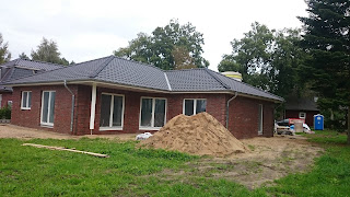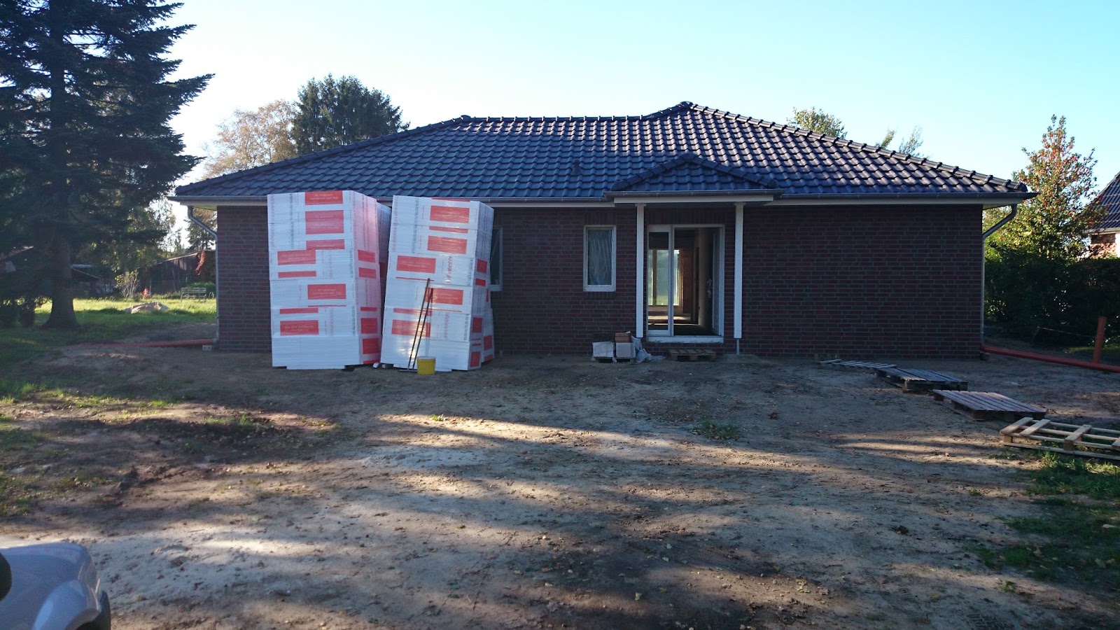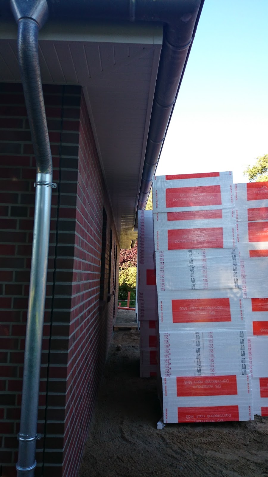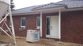 Die Handwerker waren in der Zwischenzeit aber auch nicht untätig: Die Verputzter sind fertig, die Wände trocknen vor sich hin, die Versorger haben Gas, Wasser, Strom und Telefon ins Haus gelegt, die Elektriker haben den Stromkasten gesetzt und fast alle Steckdosen und Lichtschalter für den Gebrauch vorbereitet. In der nächsten Woche kommt dann wohl der Estrich. Danach heißt es dann erstmal warten und trocknen lassen. Aber ganz so schlimm wie befürchtet wird es wohl nicht, da dem Estrich etwas beigemischt wird, damit er schneller trocknet. Nach ca. zwei Tagen kann man das Haus dann anscheinend wieder betreten. Dann muss es eine Woche von alleine trocknen, danach wird das Estrichprogramm der Heizung für eine Woche angeschmissen und anschließend werden noch Bautrockner aufgestellt. Das hört sich doch alles sehr gut an. Also Daumen drücken, dass weiterhin alles so reibungslos funktioniert!