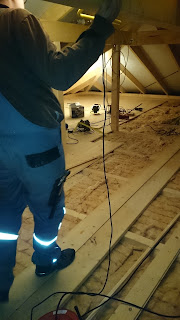Seit dem letzten WE sind wir dabei, den Dachboden mit Rauhspund abzubrettern. Immer Stück für Stück und nach jedem Arbeitseinsatz kommt der Satz: "Mensch, ist das ne riesen Abstellfläche!" Tja, wie es wohl erst aussieht, wenn alles fertig ist... Außerdem habe ich die Zeit damit verbracht, Einbaustrahler und Flutlichtstrahler auszusuchen und zu bestellen. Keine wirklich dankbare Aufgabe, da ich noch nie Spots in der Decke hatte und mir nicht wirklich vorstellen kann, wie das am Ende aussieht. Und wer hätte es gedacht: Mathias möchte runde Strahler und ich eckige ... Naja, wie hätte es auch anders sein sollen. Wir haben uns aber am Ende geeinigt, außen setzen wir runde und innen eckige. Hinzu kommt, dass die Dinger ja auch nicht ganz billig sind. Aber amazon sei Dank, dass es sich alles im Rahmen bewegt. Auf jeden Fall mussten wir die Löcher dafür schon vorm Abbrettern in die Decke bohren, damit wir zur Not noch die Dämmung anheben können, falls sich ein Kabel versteckt hat. Aber bisher sieht alles gut aus. Die Idee mit den Flutlichtstrahlern für den Dachboden hatte mein Schwiegervater - somit sollten wir auch jede noch so dunkle Ecke auf unserem verwinkelten Dachboden ausleuchten können. Sehr gute und günstige Idee. Außerdem sind in der letzten Woche bereits unsere Pflanzen umgezogen. Am kommenden Wochenende widmen wir uns dann aber wohl doch mal unseren Abwasseegräben - das wird auch noch eine ganz schöne Mammutaufgabe.